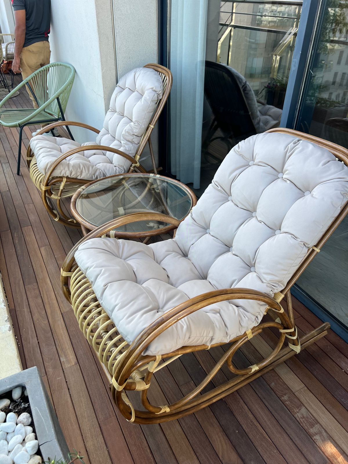 rocking-chair en rotin avec coussin imperméable n°1 du Rotin et Vannerie au Maroc, découvrez un large choix de chaises, fauteuils et salons en Rotin à prix distributeur à Salé
