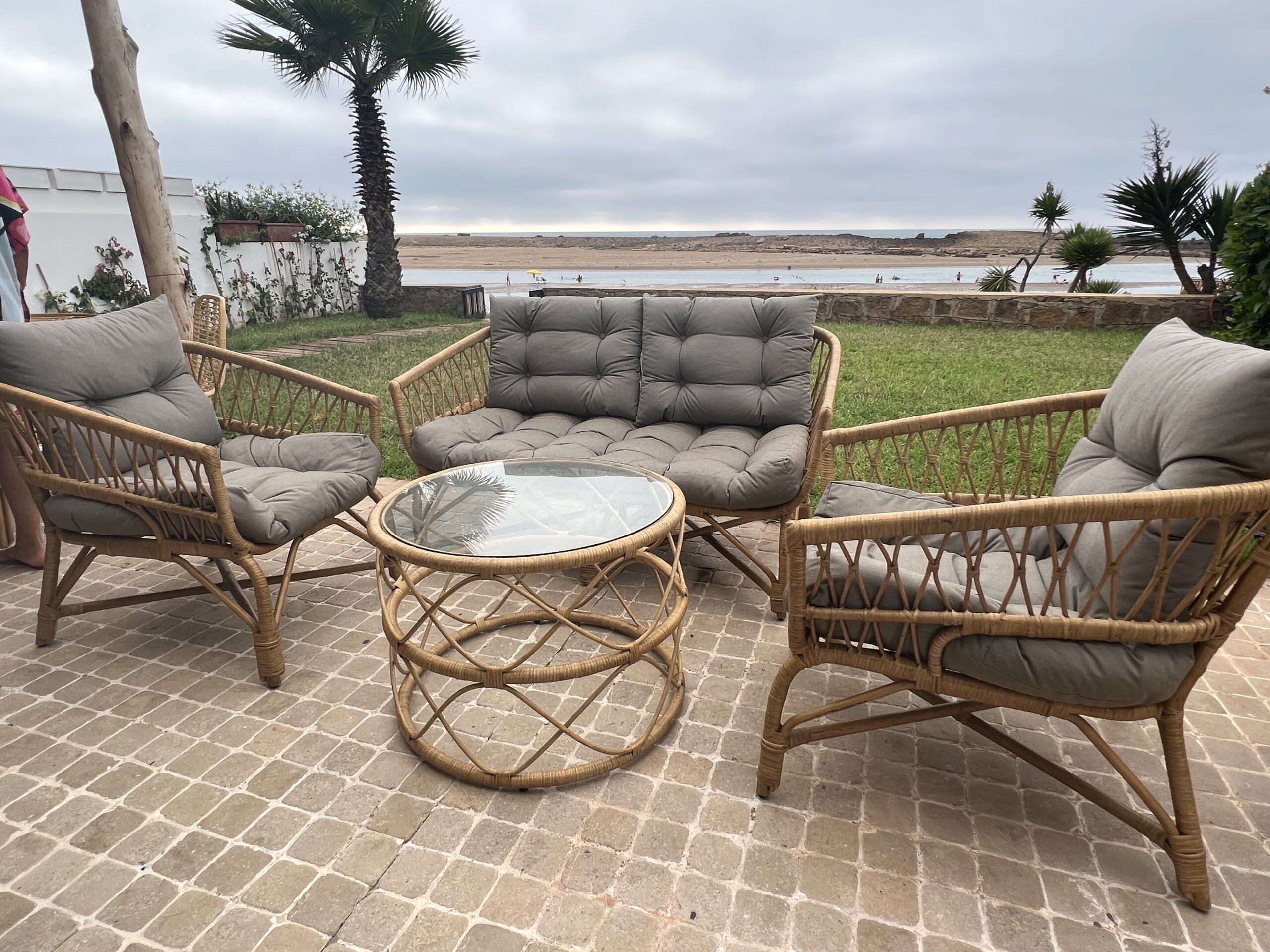 Salon de Jardin en Rotin “Ocean Breeze” – Ensemble de Mobilier Extérieur Élégant au maroc rabat salé tanger marrakech darrotin.com dar rotin
