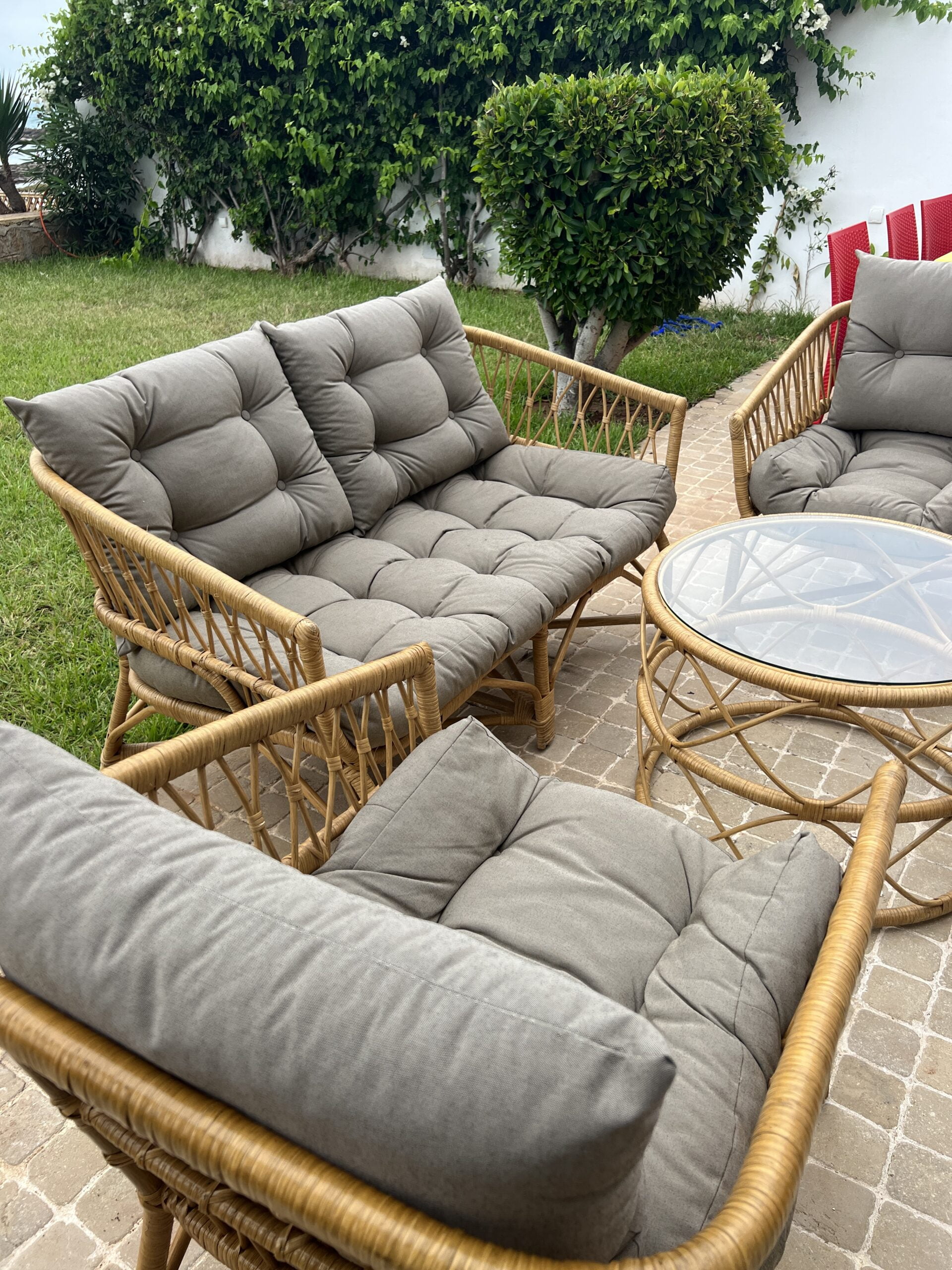 Salon de Jardin en Rotin “Ocean Breeze” – Ensemble de Mobilier Extérieur Élégant au maroc rabat salé tanger marrakech darrotin.com dar rotin