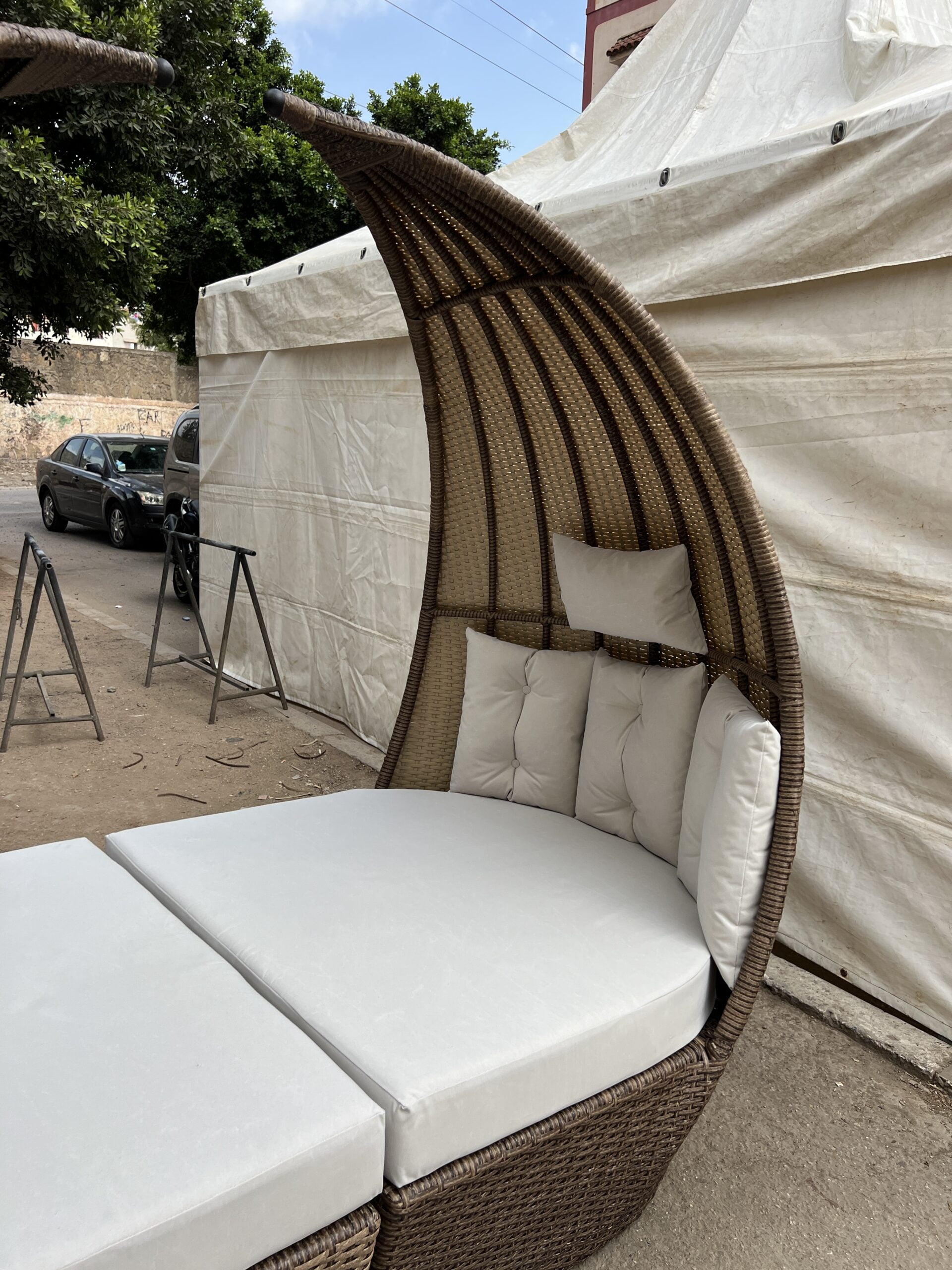 14 August 2024 Lit de jour en rotin “Oasis” avec coussins confortables pour l’extérieur Lit de jour en rotin “Oasis” avec coussins confortables pour l’extérieur