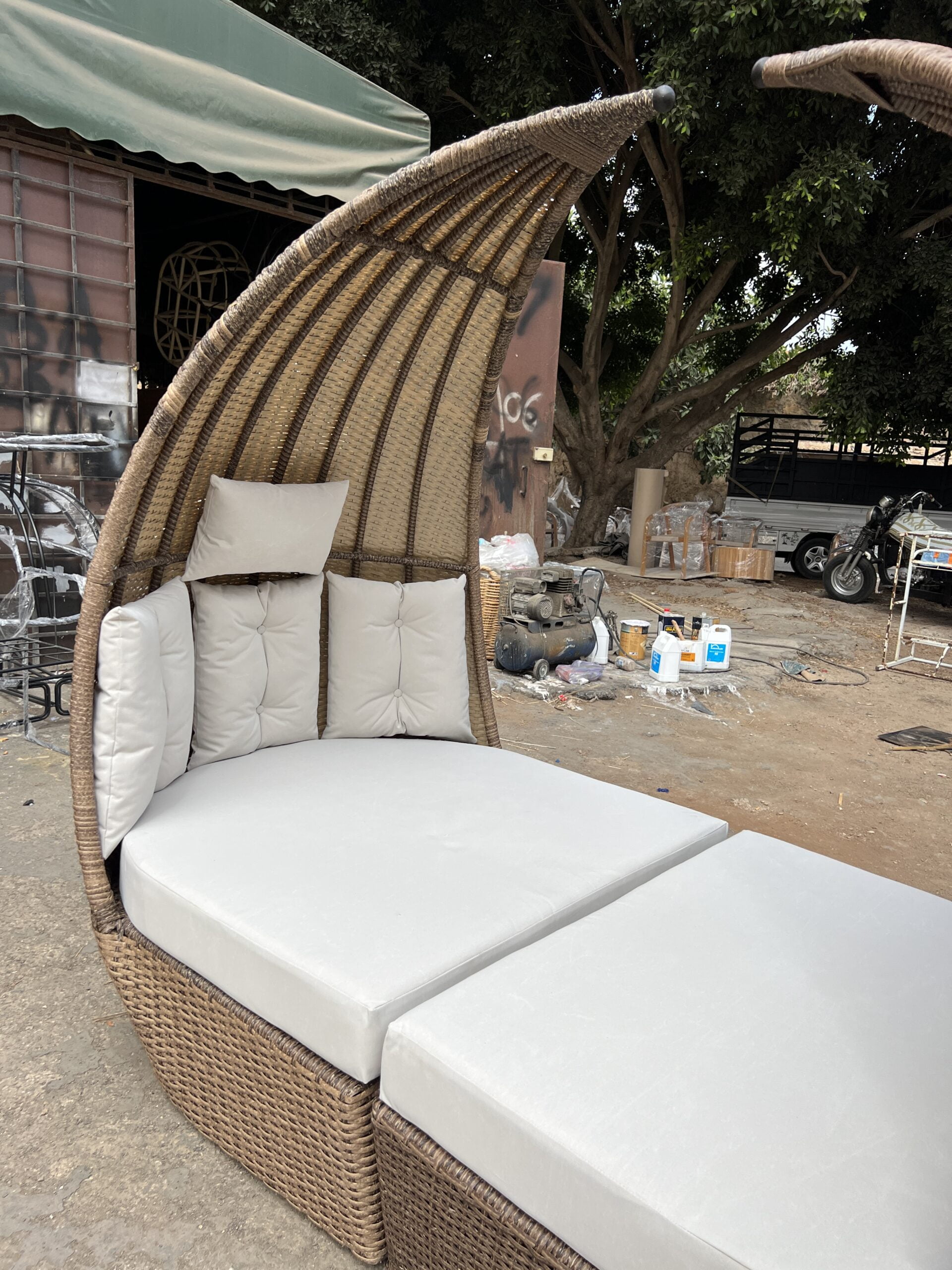 14 August 2024 Lit de jour en rotin “Oasis” avec coussins confortables pour l’extérieur Lit de jour en rotin “Oasis” avec coussins confortables pour l’extérieur