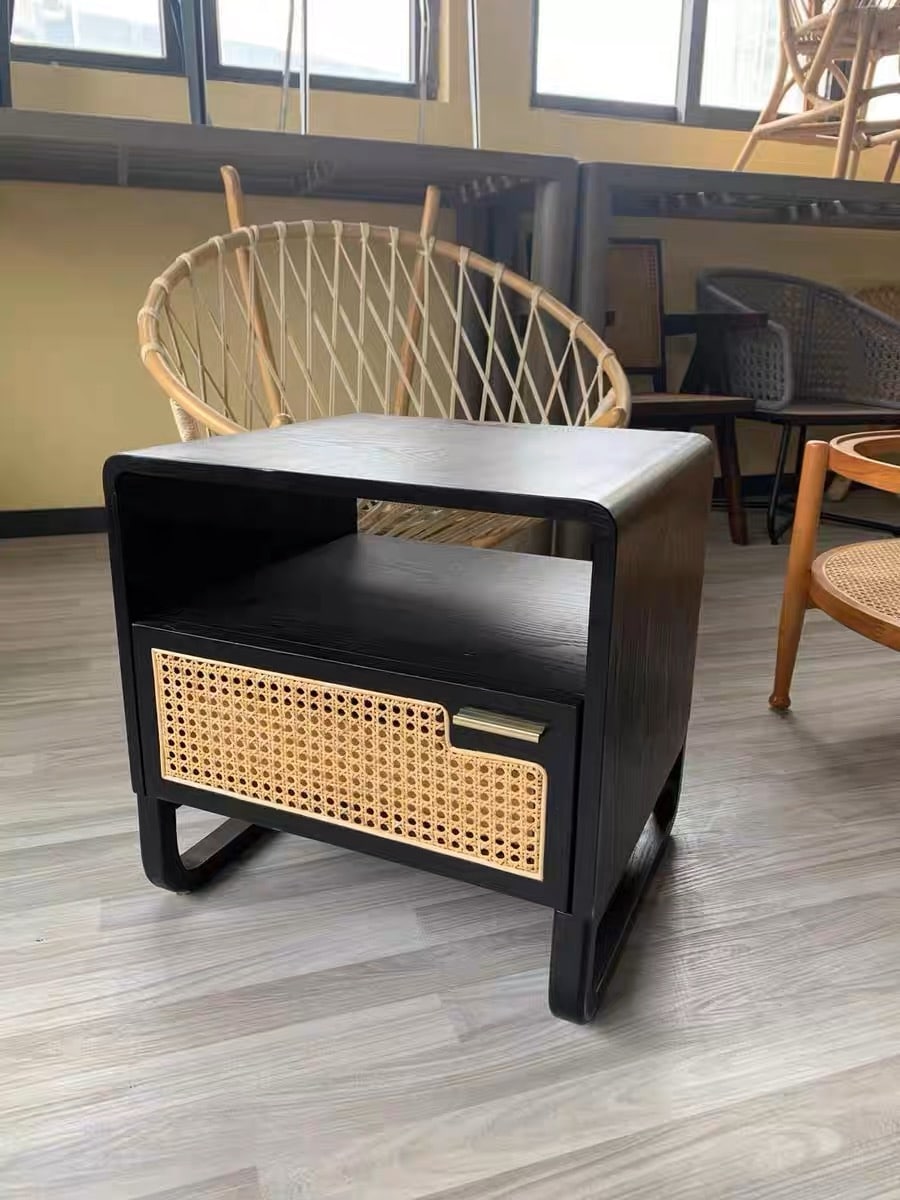 30 October 2024 Table de chevet en bois noir avec cannage en rotin – décoration chambre moderne Table de chevet en bois noir avec cannage en rotin – décoration chambre moderne