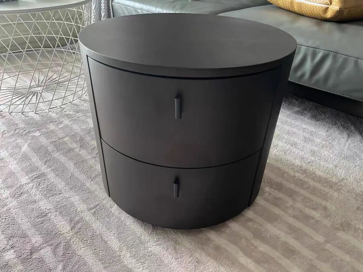30 October 2024 Table de chevet ronde noir avec double tiroir – meuble moderne pour chambre Table de chevet ronde noir avec double tiroir – meuble moderne pour chambre