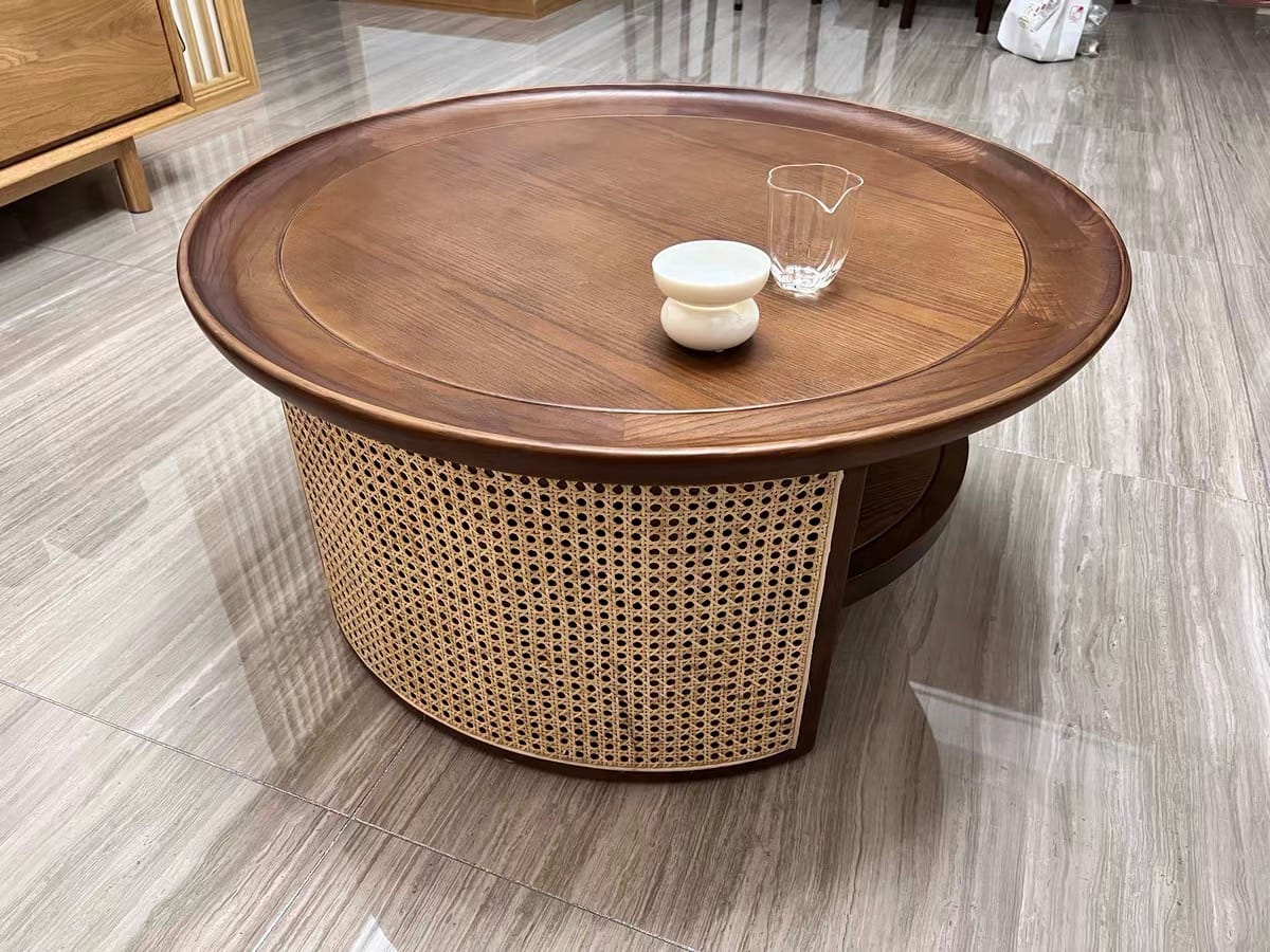 7 November 2024 Table basse ronde en bois avec cannage en rotin – décoration naturelle pour salon Table basse ronde en bois avec cannage en rotin – décoration naturelle pour salon