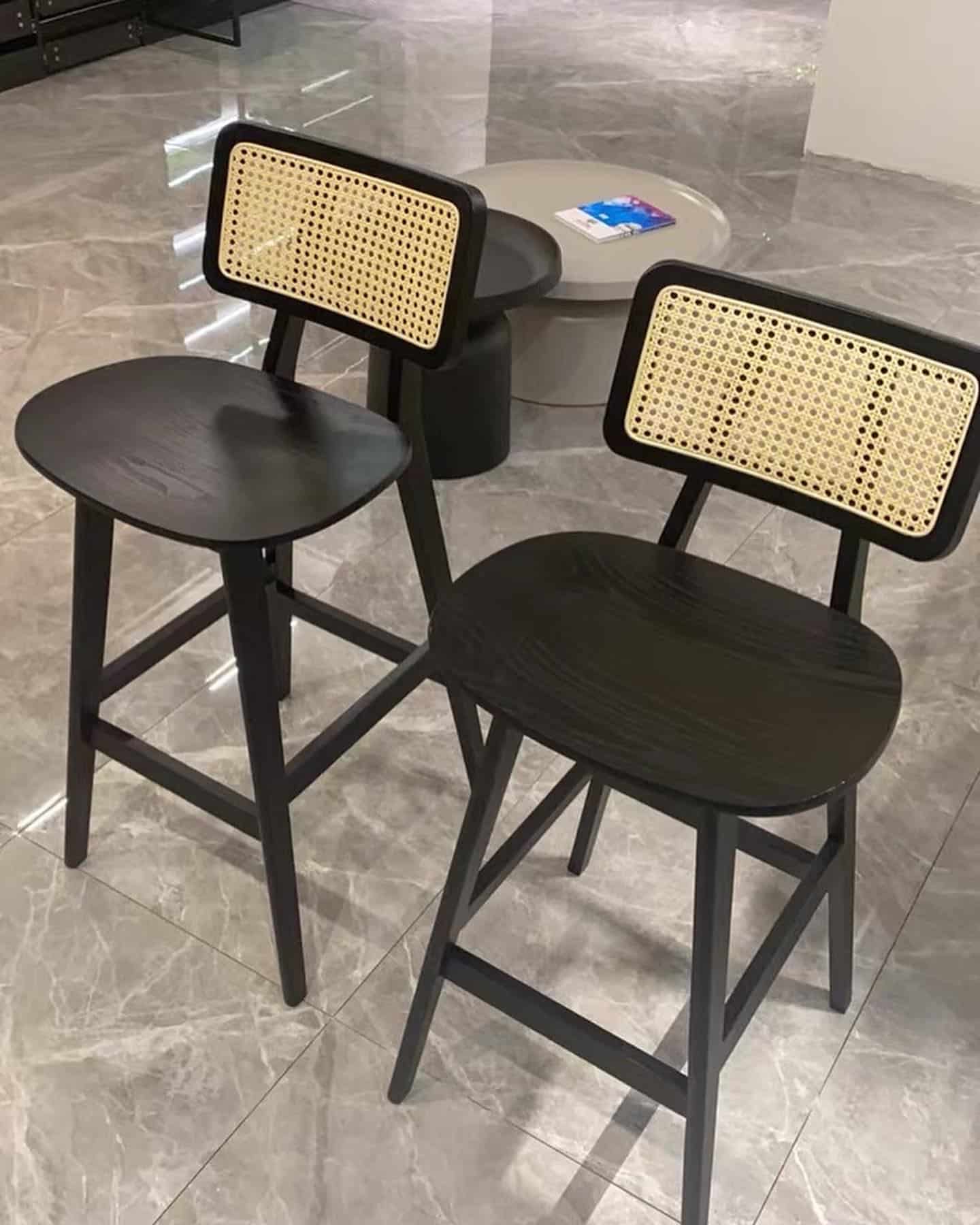 Chaise haute en bois avec dossier en cannage naturel – élégante et confortable pour une décoration moderne