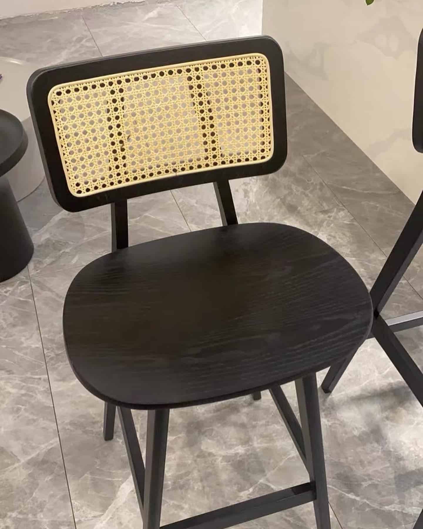 Chaise haute en bois avec dossier en cannage naturel – élégante et confortable pour une décoration moderne