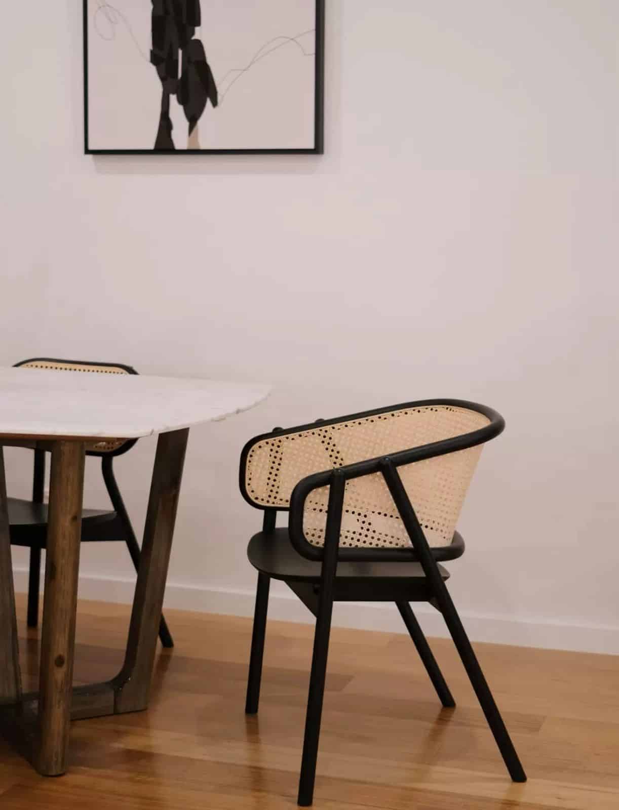Confort Enveloppant : Son dossier incurvé en cannage naturel épouse la forme du dos, offrant un soutien ergonomique pour de longs dîners conviviaux.