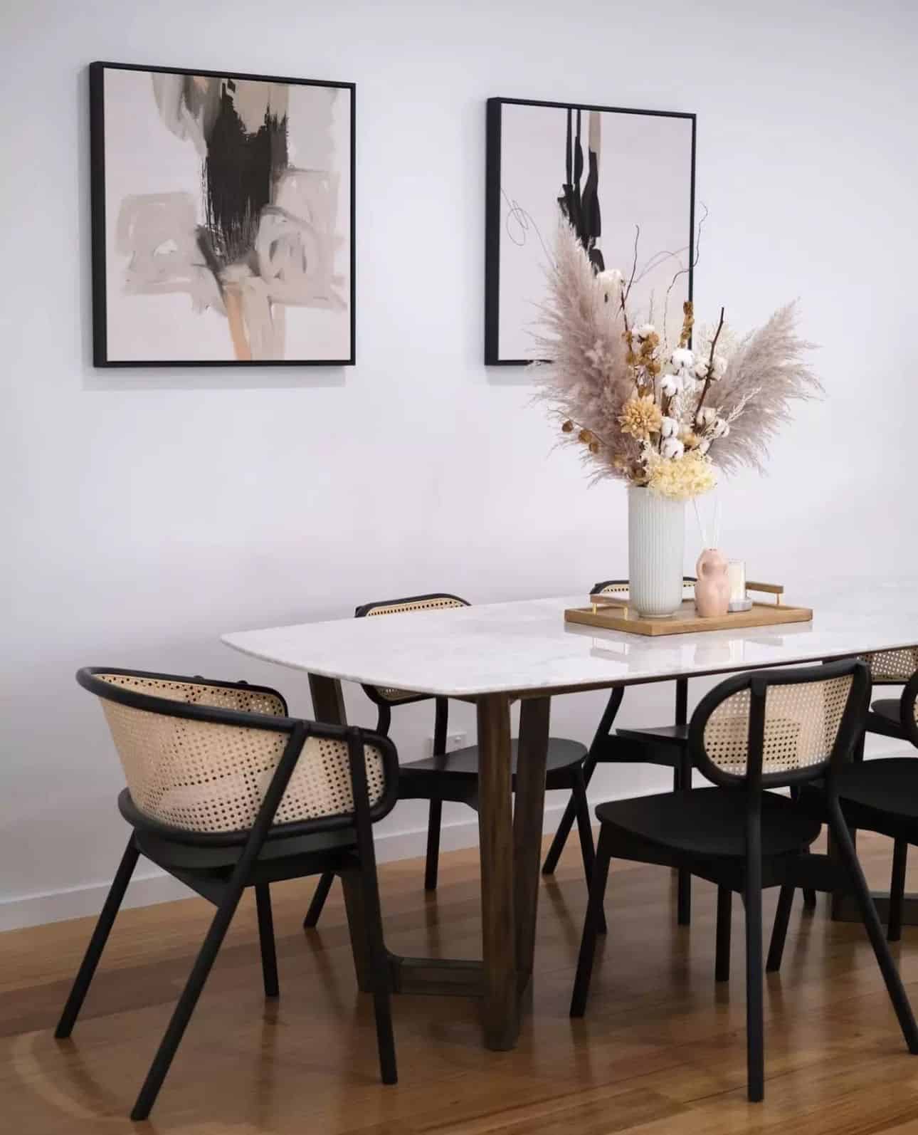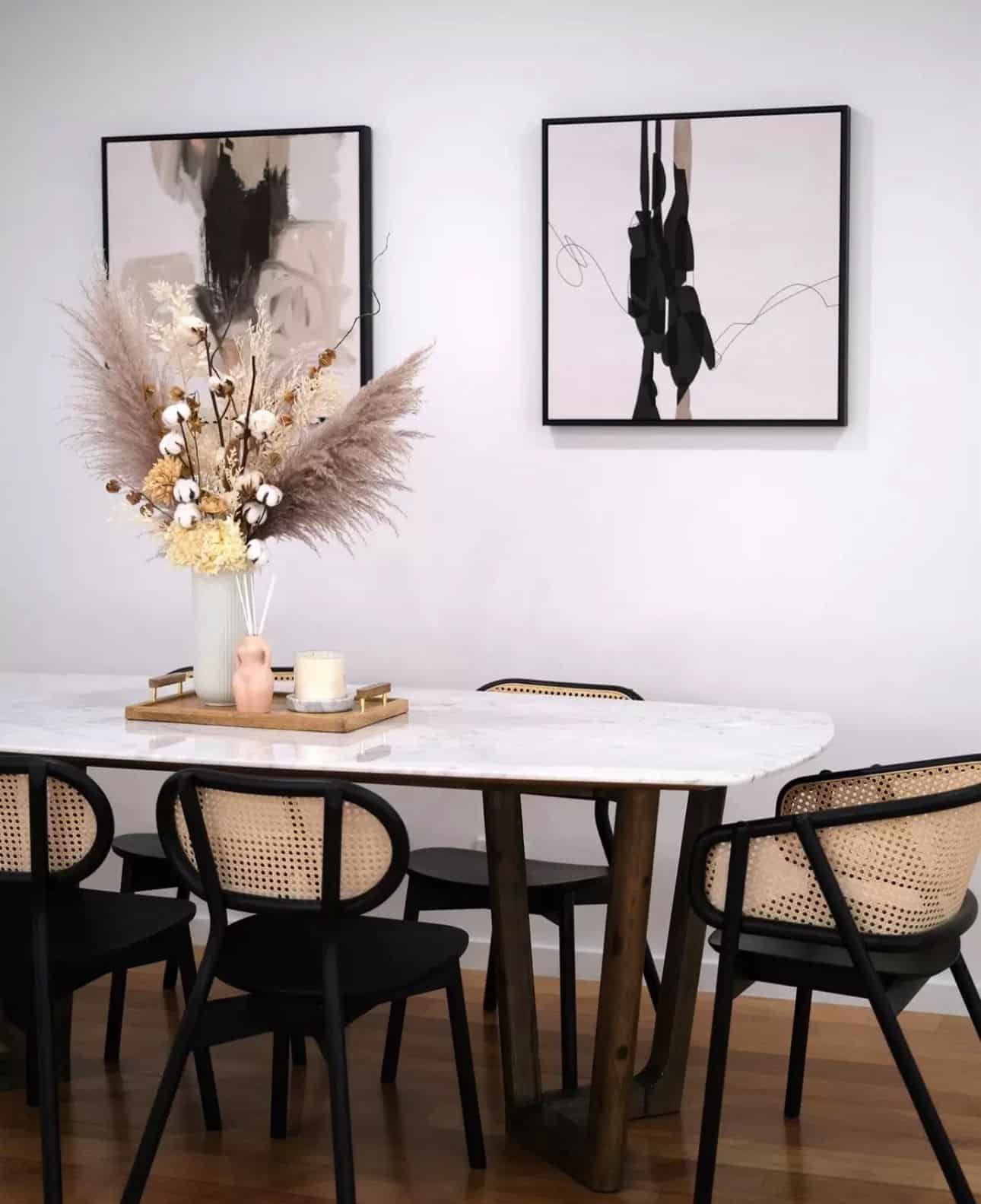 Style Japandi & Moderne : Une pièce polyvalente qui apporte du caractère à une table en marbre, en bois ou en verre.